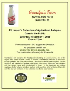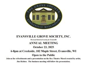 Grove Society Celebrates History in the Park August 24 The Evansville Grove Society will hold its annual History in the Park gathering on Sunday, August 24, from Noon until 3PM. … Read more: History in the Park – 2025