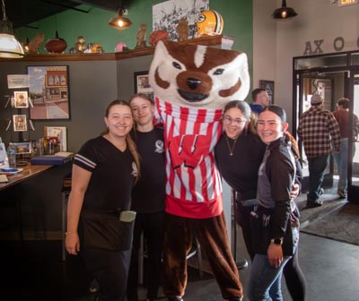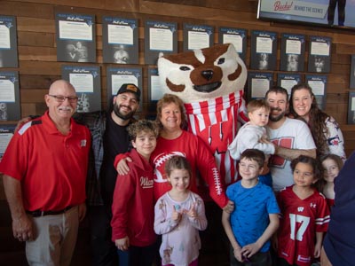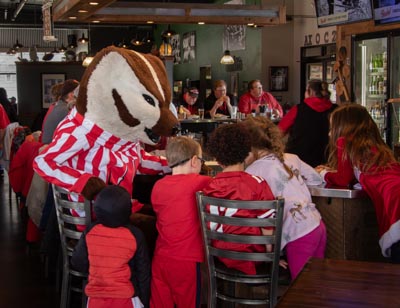 The highlight of the party, however, was an appearance by Bucky Badger himself, who spent an hour posing for pictures, delighting the many children in attendance, and leading them around the place as if he were the Pied Piper.
